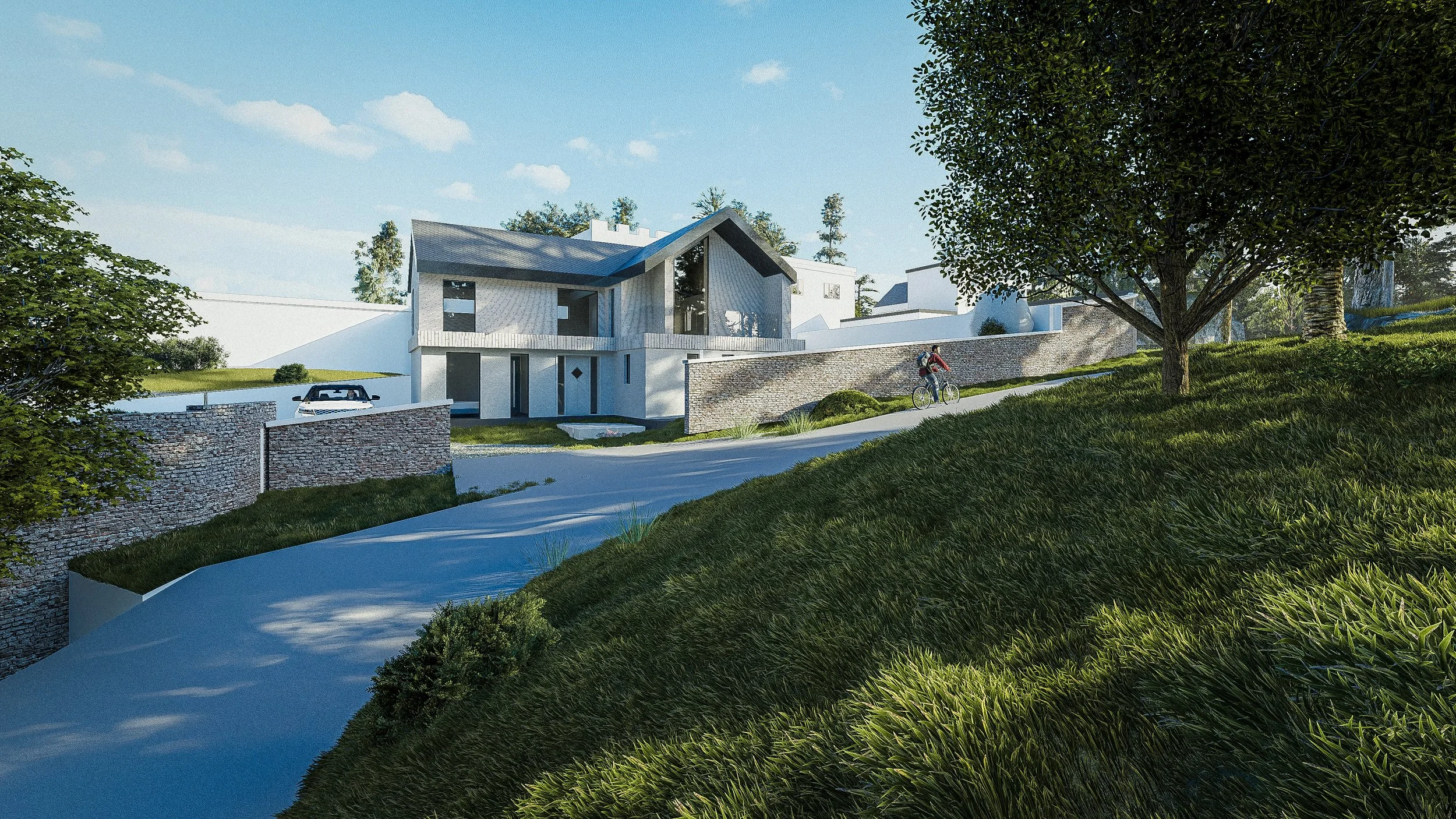 Green roofs and boundary planting complement the surrounding biodiversity and respond to local tree protection orders. The design navigates tight site constraints and neighbouring relationships with elegance, anchored into the slope, stepping back from sensitive boundaries, and maintaining key outlooks.